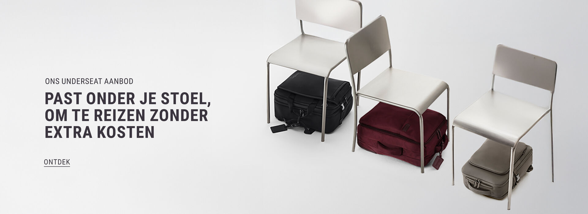 Bagage die zonder kosten onder de stoel past?
